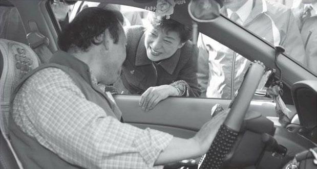 我四处拜票,一天大约只睡两三个小时,到后来,嘴唇都破了,甚至还因行程过满在拜票时差点累晕过去。而且因为握手过度,导致整只手红肿,手腕也酸痛不已。虽然用尽了各种方式消肿,手却还是肿胀,到后来甚至连筷子、汤匙都拿不动。到了选举前五天,我只好缠着绷带,虽然手越来越肿大,大国家党的支持率却越来越上升。从一开始预测十席,到二十席、三十席、五十席……可能当选的区域也一直在增加。不管走到哪里,都有人边喊“朴槿惠来了”边跑来欢迎我、握手、给我拥抱。看到他们这样地热情,使我感到更大的责任感,心里只有一个想法:“我不能让他们失望,一定要好好做。”就这样,“4.15”国会总选也逐渐逼近。