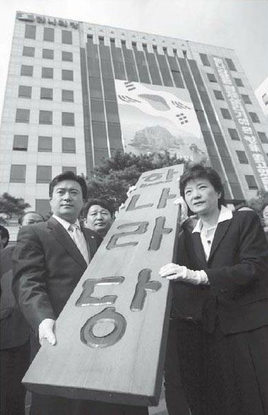 2004年3月24日,是我担任大国家党代表的第一个工作日,眼前是汝矣岛国会对面极为气派的十层党部大楼,但我并没有走进去。我一当选为党代表,就已向事务总长传达过我不会到这个党舍去上班的意愿。我认为,韩国国民都已经因为我们党的腐败而失望了,此时此刻不该再使用这个党舍才对。这天,我与党员们一起卸下原本挂在大楼墙上的“大国家党”的铜牌。党内事务处的年轻党职人员以及几位青年党员个个表情悲壮,小心翼翼地将铜牌卸了下来。我走上前去,用手接住铜牌的一边,其他年轻党员也帮忙抬铜牌,小心移动步伐。这等于是在宣示我们要断绝腐败的决心,同时也跨出了我们风餐露宿的第一步。