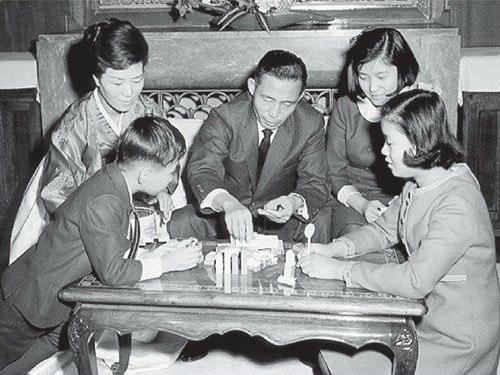 4.害羞的志晚在青瓦台庭院玩耍并躲到我背后。
